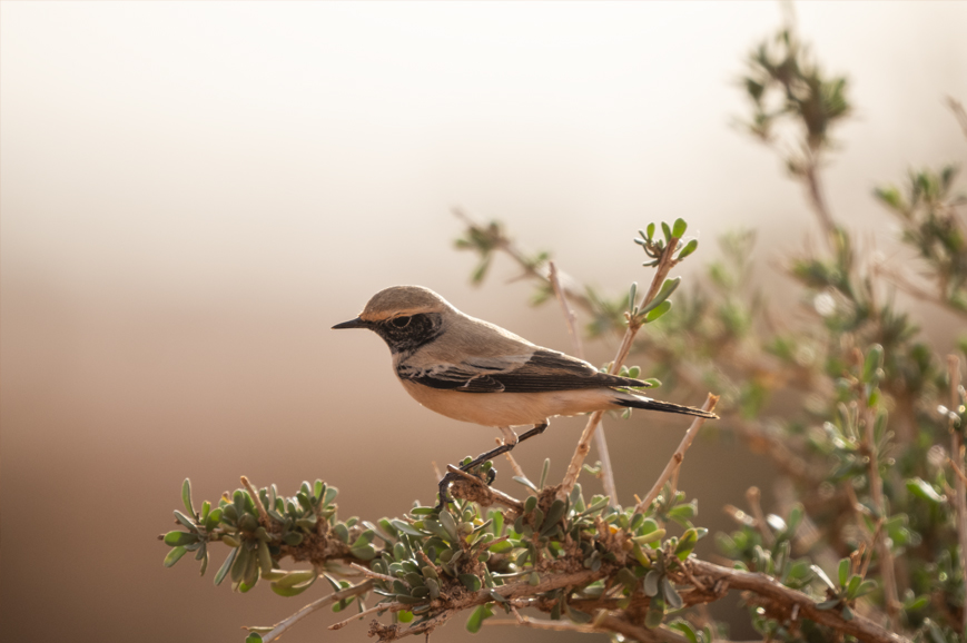La búsqueda de posibilidades hace que en el desierto todo el mundo se acerque, como este juvenil de collalba desértica.