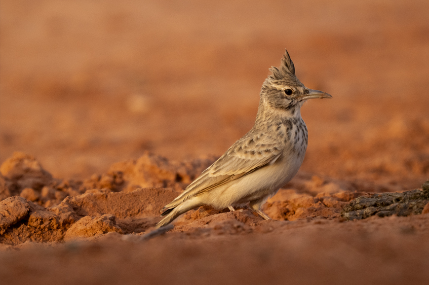Un grupo de pajareros al uso, además de haber llegado a esa balsa de agua a una hora decente, hubiera liquidado el tema con un barrido de prismáticos que se hubiese saldado con tres cucharas, un chorlitejo chico, una collalba gris y cuatro cogujadas comunes, de las del pico más largo que un día sin agua, la subespecie magrebí. Cuestión de minutos. Hacerlo con estos escaneadores minuciosos de arenas y limos llevará más de una hora y varios pow-pows en torno a una marca en el suelo para consensuar opiniones. Aunque, sorprendentemente para el ajeno, no había mucha duda entre los dos siux para determinar el género e incluso señalar la especie concreta.