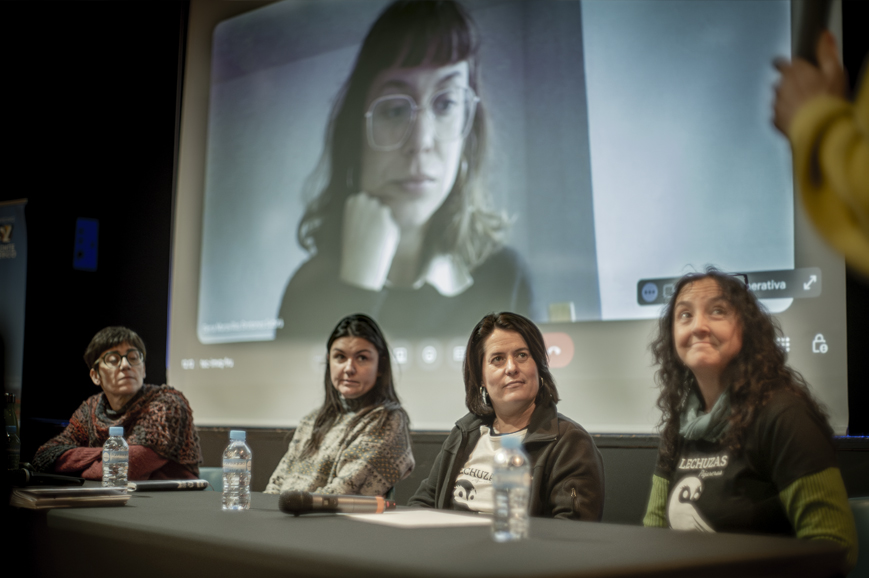 Susana Nogueira, Chúss Fernández, Elena Maravillas, Antonia Zamora y Victoria Gómez durante la mesa redonda sobre ornitología y feminismo.