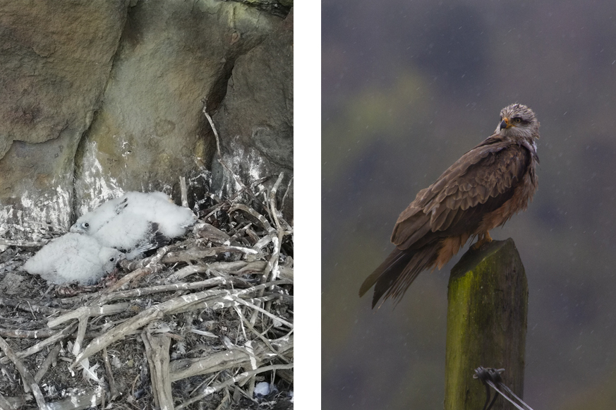 Pero, ya puestos, ¿cómo afecta un fenómeno de estos a la fauna? Vamos a sumergirnos en uno de mis seguimientos. Estamos a finales de abril (uno de tantos de los últimos años) y tengo controlados varios nidos de halcón con pollos de distintas edades y algunos aún con huevos. La primavera va como siempre, con tiempo revuelto, ratos de sol, ratos de lluvia y temperaturas suaves, pero se anuncia una ciclogénesis explosiva. Al día siguiente la temperatura se desploma, llueve intermitentemente con mucha fuerza, a veces con granizo, y el viento alcanza rachas de 125 km/h en el cabo Matxitxako. La noche previa no pego ojo por la preocupación que me invade, y esa mañana, pese al tiempo horrible, voy a ver cómo lo llevan algunas de las parejas que tienen los nidos en repisas y oquedades que podrían no tener suficiente refugio. Los halcones que tienen huevos y pollitos pequeños van aguantando, con la hembra y el macho turnándose para cubrirlos y mantenerlos calientes. Los que tienen los pollos grandes, la hembra se pega a ellos y estos resisten estoicamente, empapados hasta los huesos y tiritando. Pero los que tienen esos pollos medianos … La hembra se echa encima de ellos con las alas semiabiertas tratando de abarcarlos, con los ojos cerrados y el plumaje oscuro por el agua que lo humedece. Los pollos se aprietan debajo de su madre, con la mitad del cuerpo expuesto, empapados. La lluvia corre por sus cuerpos desnudos, con el plumón convertido en hilos chorreantes. Los pollos que consiguieron aguantar ese primer envite, sufren un segundo y un tercero, en lo que se convierte en una semana de esas anormalmente fría y lluviosa para las fechas. El resultado es la muerte de prácticamente todos los pollos medianos de la mayoría de los nidos, los huevos y pollos pequeños de los nidos menos protegidos y algunos de los pollos grandes.